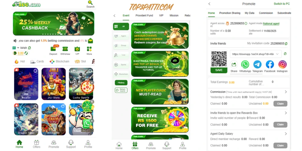 The 1ee Game app offers a smooth, secure, and user-friendly experience. Players can earn through games, betting options, rewards, and a referral program—all without paying any registration fees. This makes it a strong alternative to many paid gaming platforms available today.